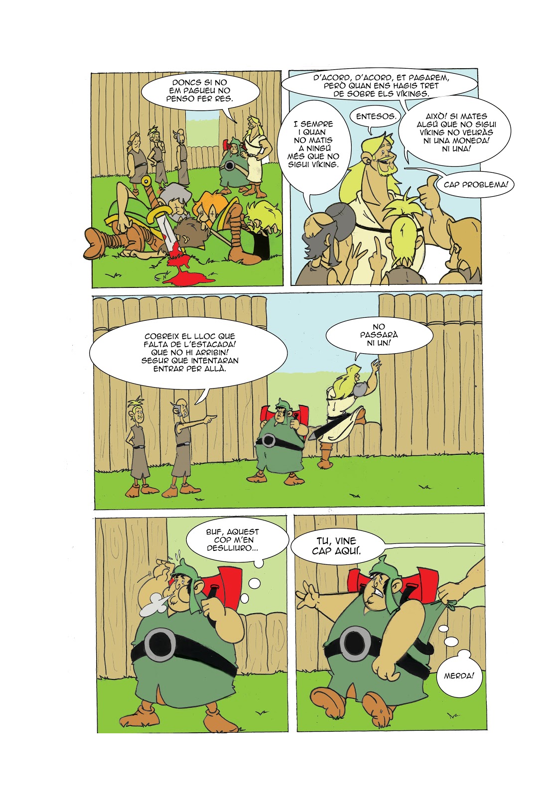 Ho he intentat posposar al màxim, però ja no pot ser. No dono prou l'abast com per seguir pujant les vinyetes d'actualitat. He estat apunt de deixar el blog tot el mes inactiu quan me n'he adonat que tinc carretades de coses no publicades i mira, m'ha semblat que podria ser una bona ocasió per a pujar-les. Una d'elles és aquesta, el còmic Víkings de debò. Ja us n'havia parlat. De fet, us havia ensenyat la primera pàgina i avui us ensenyo segona i la tercera, de manera que si voleu seguir el fil, millor que hi torneu a fer un cop d'ull. El dibuix és del mestre Raül Ramos, jo només hi vaig posar el guió.